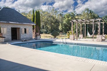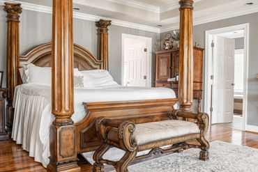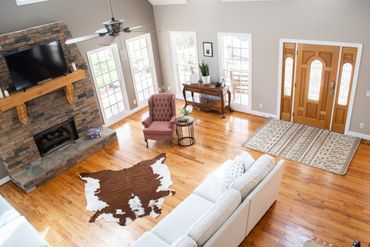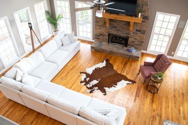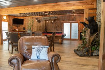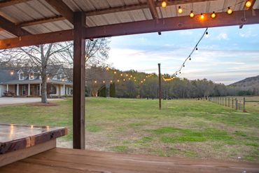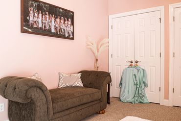 Bedroom one is furnished with two king beds and is super cute and boho. Bedroom two is furnished with 2 queen beds with more modern western decor. Downstairs you will find a large living area, kitchen, and bridal suite surround by windows for a panoramic view of the property. The downstairs master suite is furnished with a masculine king size bed and is decorated perfectly for the bride. This room also features a large bridal dressing room inside the master suite, perfect for beautiful pictures opportunities while getting ready with all your girls. Outside, you will find a large wrap around porch, pool, hot tub, fire pit, and pool house. Be sure to check out the pictures below and then call us to schedule an in person tour.