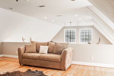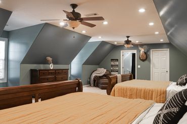 Upstairs you will find two master suites and a loft with a bar and large screen tv.